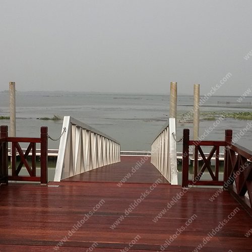 Structure: alloy frame 6061 T6,aluminum alloy handrail,MIG welding Decking:hardwood,fixed to the frame with blind rivet Scroll wheel:nylon rollers Accessories:roller pin,hinge pin,all screw in AISI 316 Transition plates:aluminum frame and hardwood
