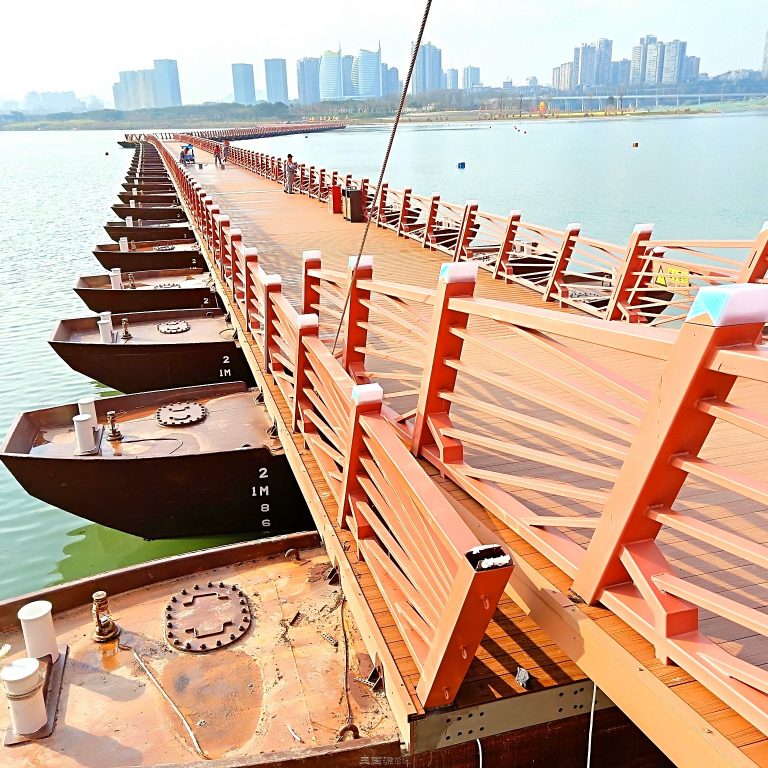 In recent years the development of economy drives the new demand for pontoon bridge, hardly used as crossing bridge, and is more used for sightseeing corridor —— landscape pontoon bridge.