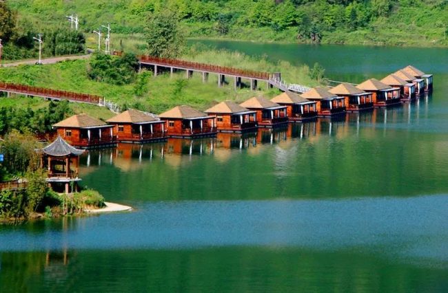 Mainly consist by aluminium alloy gangway, floating foundation, wooden house , wooden walkway. The fixing methods are steel-support,mooring system.gangway:30㎡floating walkway:496 ㎡the floating house:each is 8 x 9 m , total is 72 ㎡,with balcony is 21 ㎡.