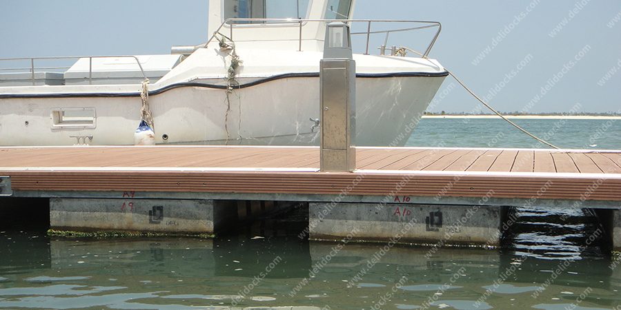 The floating pontoon is 4m*22m platform, the gangway is 8m*1.5m and aluminum alloy structure. The diameter of pile is 500mm,two kinds of fixing methods:pile and anchoring block.The concrete floats are at least 50 years life span. The ancillary equipments like power/water pedestal, fire extinguisher pedetstal, mooring cleats.
