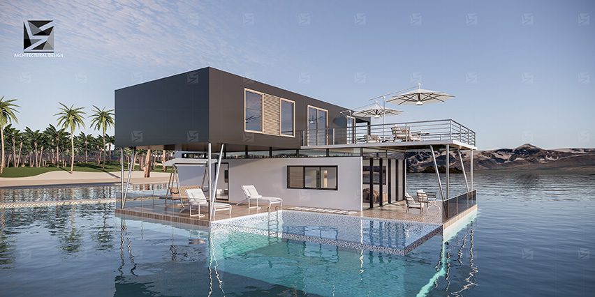 The water hotel is equipped with the latest low-energy building ecosystem and features functional spaces such as kitchens, bathrooms, king rooms, study rooms, outdoor terraces, and outdoor swimming pools. (It can also be assembled according to market demand)