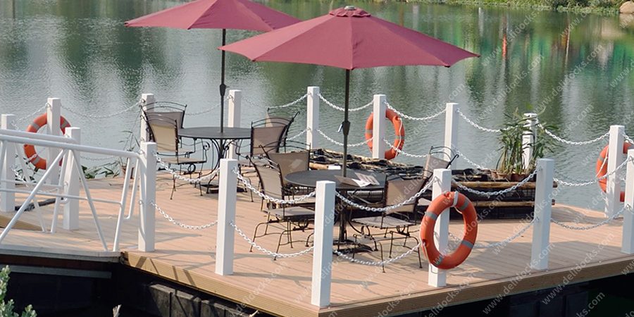 The platform is leisure function,people can enjoy the beautiful lake scenery on it.The life span is more than 20 years,WPC decking is more beautiful than concrete one.It can contain 2 tables and about 8 person.It is calm and enjoy coffee and tea good place.