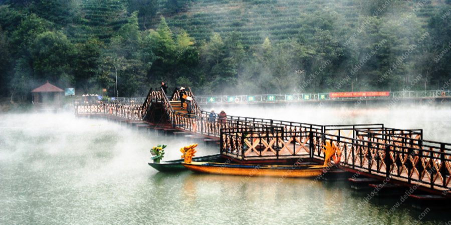 town,Zhangping city,Fujian province.It is one of the core scenic of Tiantai National Forest Park.With water system landscape as the main body,the scenery walkway (arched bridge) through the water on both sides.The landscape walkway is fixed by anchor,the middle of bridge is arched structure.