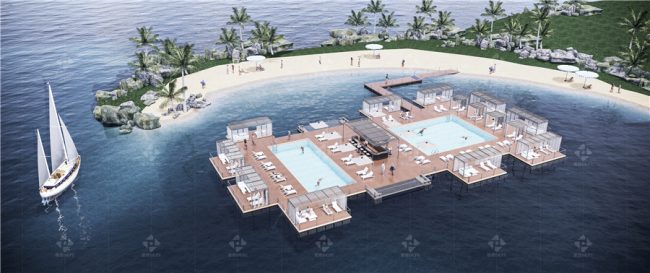 The floating pool produced by us Deli Group is a safe, prefabricated, luxurious floating pool. Enjoy swimming in the ocean during your experience at a water villa or yacht party. The pool protects jellyfish and Marine life with a tightly woven net and provides an enclosed area to prevent guests from drifting out of safety…
