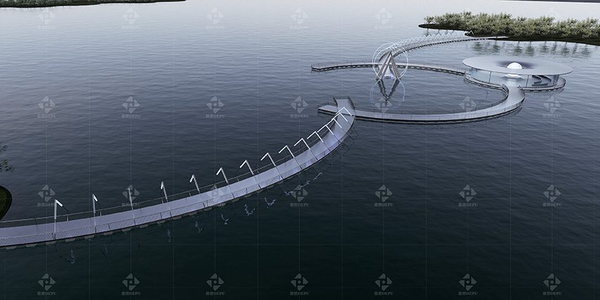 The appearance design of the floating bridge is also unique, adopting a futuristic style, with simple and smooth lines and special materials used on the surface, presenting a unique metallic luster and emitting a technological atmosphere. At night, the floating bridge is decorated with dazzling LED lights, like a dancing neon, embellishing the surrounding space with extraordinary beauty.