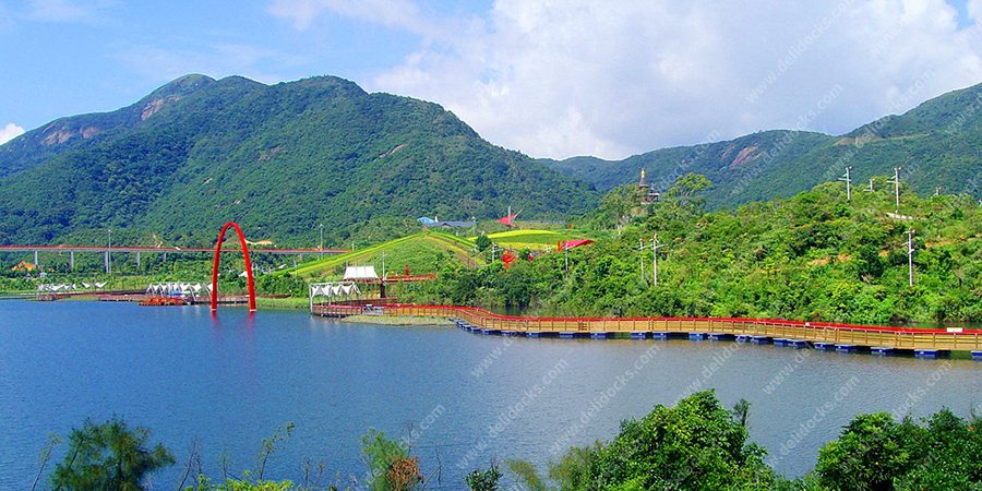 Now the landscape pontoon bridge is the longest,the higest technical requirements and the largest quantities of landscape pontoon bridge in China.The pontoon bridge is located in the Oct East,which is invested 3 billion yuan by OCT Group to build perfect overseas Chinese city.The landscape pontoon is winding on the water,surrounded by lakes and mountains.