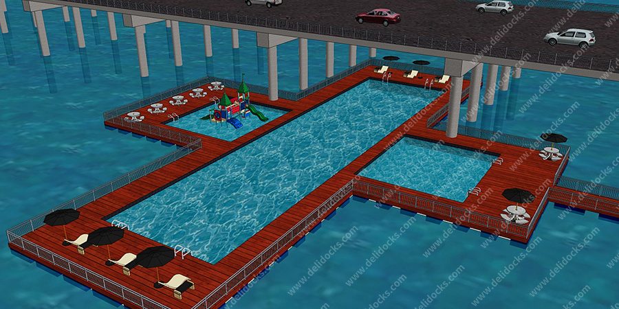 It is water amusement and leisure swimming pool,it was seperated into two main parts:adult area and children area.The children area can install some amusement equipments and the adult area is under the highway,which make full use of the space reasonably.